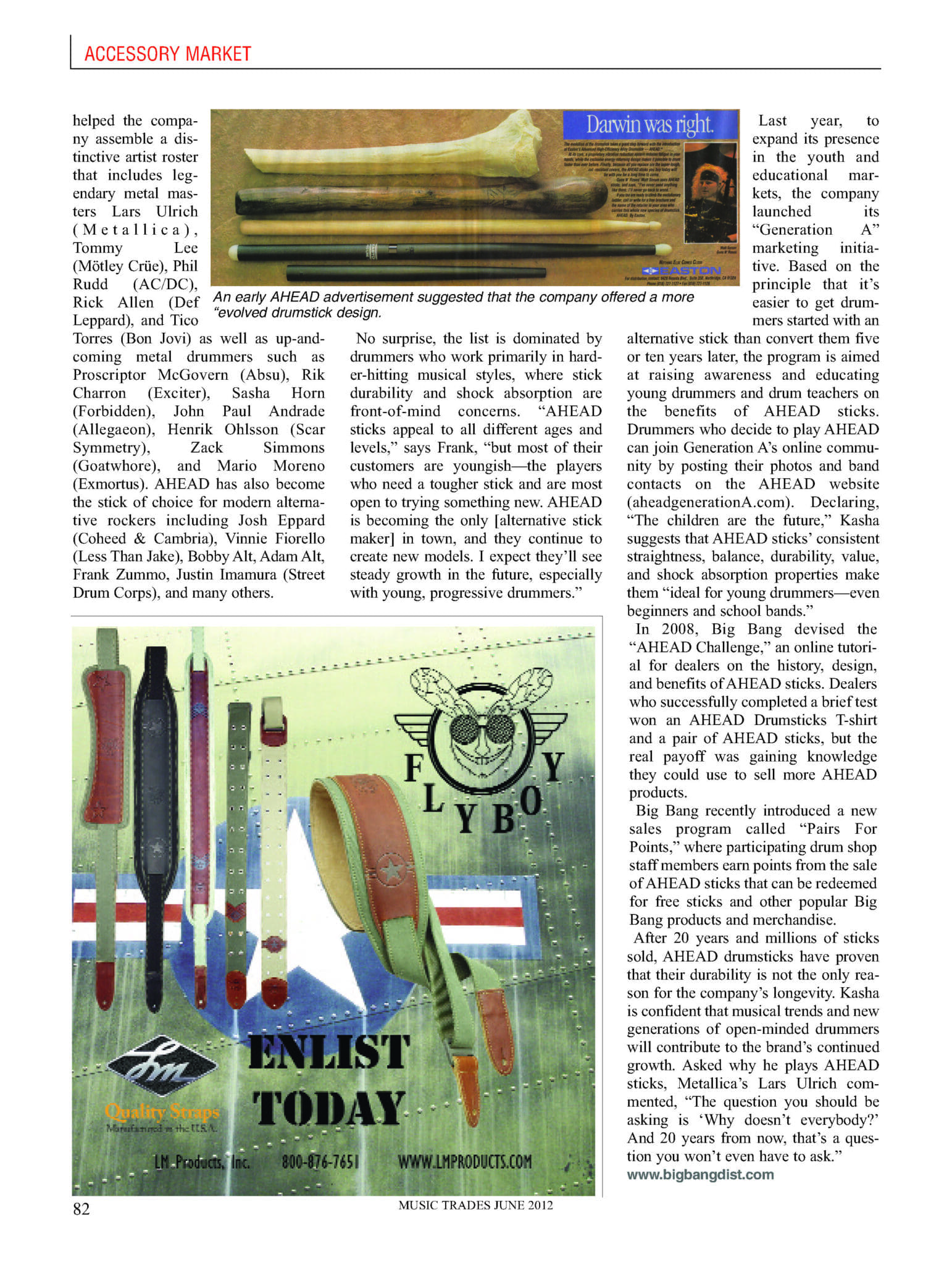Bob recognized the potential for AHEAD drumsticks to revolutionize drumming. This insight led him to launch Big Bang Distribution, not only to distribute the AHEAD brand but also to introduce other innovative products to drummers. The transition from music store owner to distributor allowed Bob to focus on a new vision—creating a company that would not just sell products but support drummers' needs. The AHEAD brand’s rapid growth was fueled by endorsements from top drummers, including Lars Ulrich of Metallica, who was one of the earliest adopters. Such endorsements provided the brand with credibility, helping to establish Big Bang Distribution as a major force in the percussion industry.