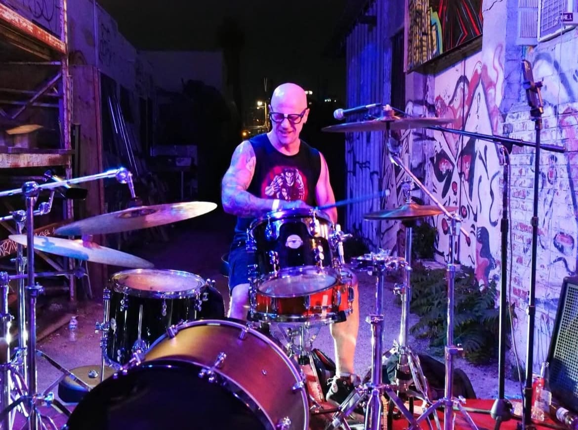 After playing around Chicago for a few years Justin made the move to Los Angeles where he had the opportunity to make music with some true greats such as James Lomenzo (Megadeth), Rowan Roberts (Dio) and Angelo Moore (Fishbone). He toured Europe with Graham Bonnet (Rainbow, Alcatraz) and has recorded with heavy metal producing legend Bill Metoyer (Slayer, Corrosion of Conformity).