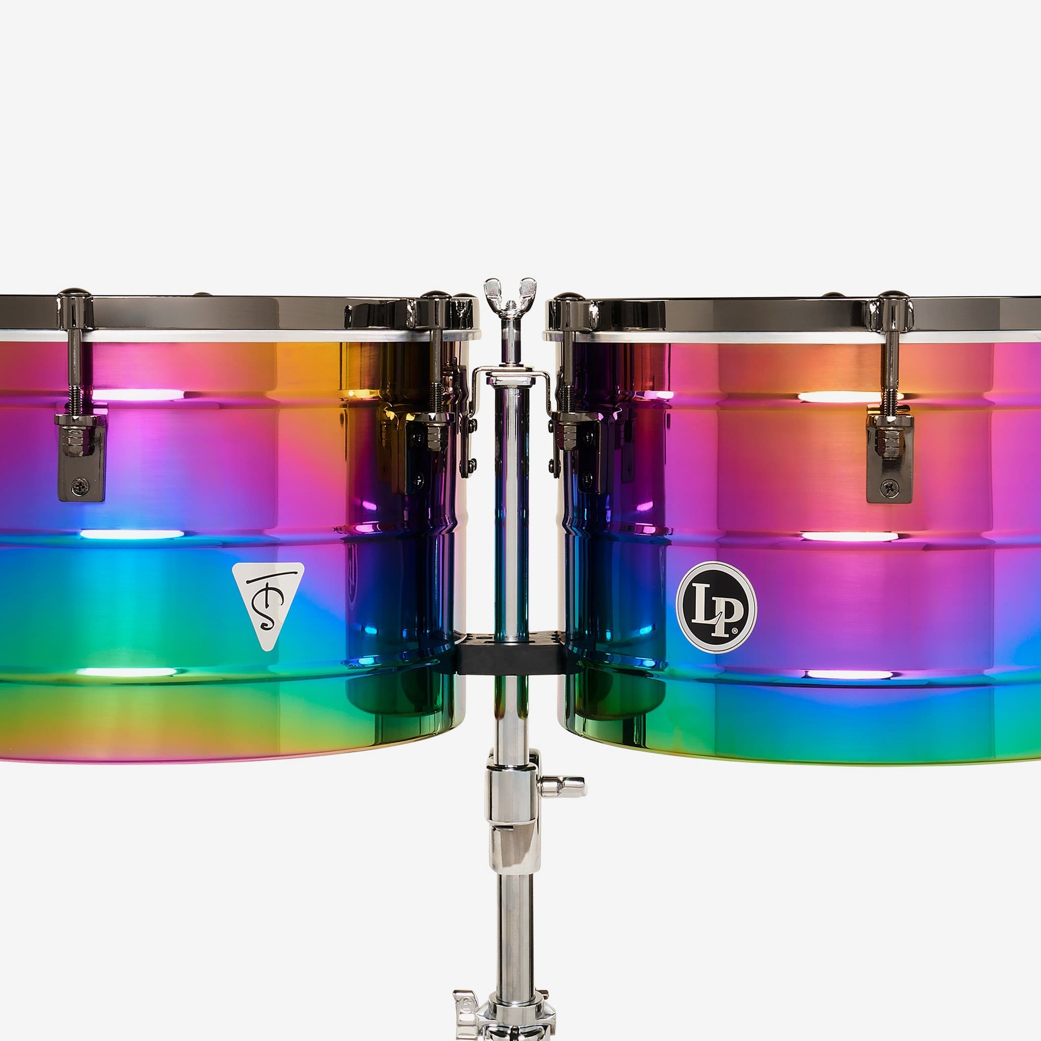 As a two-time Latin Grammy winner, an in-demand producer and a powerful timbalero, Tony Succar is absolutely 'en fuego.' He is a premier example of the next generation of Salseros and Latin Jazz musicians that are dynamic and forward-looking while consistently paying homage to their forefathers, just like these signature timbales. Based on LP's ever-popular Tito Puente timbales with traditional tuning, the Tony Succar Thunder Timbales offer bright and booming tone with unique Rainbow Chrome shells. This amazing finish offers subtle color variations, making every set truly one-of-a-kind! Combined with striking Black Nickel hardware you'll enjoy a sound that is classic and familiar while possessing an aesthetic that is modern and progressive.